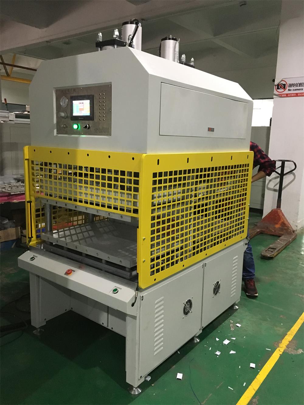 用于新能源電池工藝,CCS疊層母排,側(cè)板,端板,水冷板覆膜工藝,吸塑殼PFC覆膜連接,F(xiàn)FC與鋁排貼合,設(shè)備實現(xiàn)單機(jī)或與自動線體連接,標(biāo)準(zhǔn)設(shè)備,具有冷熱壓功能;通過設(shè)備與模具配合,模具型腔壓合產(chǎn)品形狀,設(shè)備加熱加壓模具后,PET膜達(dá)到激活溫度,貼合與FPC與鋁排上,熱壓后冷壓將產(chǎn)品與模具降溫,實現(xiàn)冷模進(jìn)冷模出,保證設(shè)備操作的安全穩(wěn)定性。